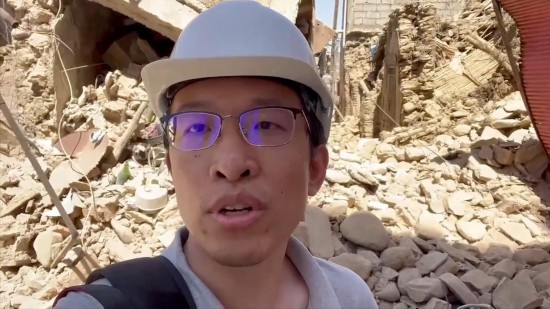 新華社記者霍晶奔赴震中附近的艾米茲米茲村,進(jìn)行現(xiàn)場報道。
