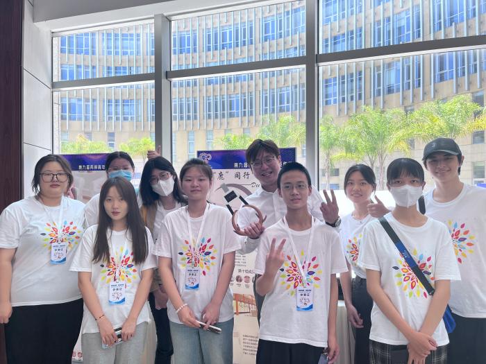 浙江工貿(mào)職業(yè)技術(shù)學(xué)院臺(tái)籍教師鐘振忠(左六)跟學(xué)生們?cè)谝黄稹?本人供圖