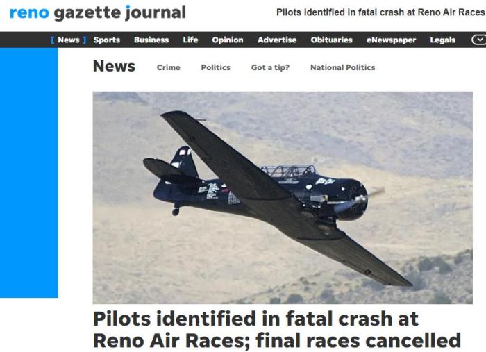 當(dāng)?shù)孛襟w雷諾公報(bào)(Reno Gazette-Journal)報(bào)道稱,遇難的飛行員分別為飛行員克里斯·拉辛和尼克·梅西。據(jù)介紹,拉辛是這次比賽的競(jìng)賽冠軍,名列第一。梅西排名第二。兩名飛行員都來自加州。