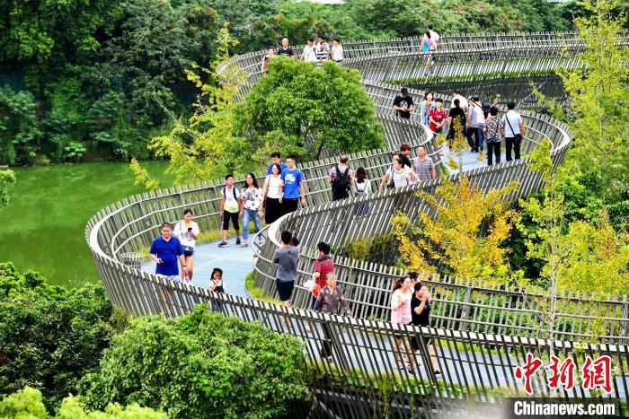 福道在城中穿行,將山林、公園綠地、開(kāi)放空間等整合、串聯(lián),把山、水、人、城融為一體。中新網(wǎng)記者王東明攝