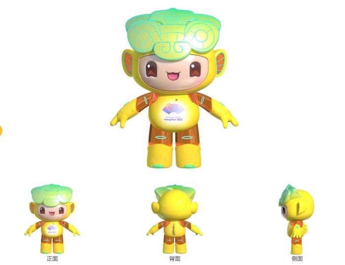 “琮琮”的設(shè)計(jì)靈感源自良渚玉琮,代表世界遺產(chǎn)良渚古城遺址。它全身以源自大地、象征豐收的黃色為主色調(diào),頭部裝飾的紋樣取自良渚文化的標(biāo)志性符號“神人獸面紋”,意寓“不畏艱險(xiǎn)、超越自我”?!扮眻?jiān)強(qiáng)剛毅、敦厚善良、體魄強(qiáng)健、熱情奔放,擅長力量型與傳統(tǒng)項(xiàng)目,如武術(shù)、舉重等。