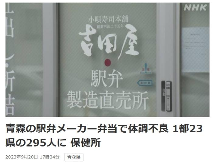 中新網(wǎng)9月20日電 綜合日媒報(bào)道,20日,日本青森縣八戶市保健所發(fā)布消息稱,由當(dāng)?shù)乇惝?dāng)公司“吉田屋”引發(fā)的大規(guī)模食物中毒事件,已有295人出現(xiàn)癥狀,涉及范圍增至1都23縣。