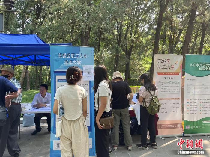 不久前,北京地壇書市里設(shè)置的東城區(qū)老年開放大學(xué)招生點位在社交媒體上意外出圈,許多年輕人慕名前去。