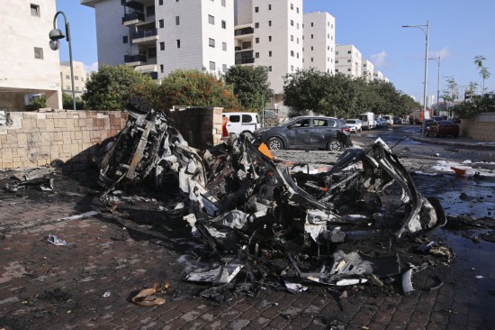 ↑這是10月7日在以色列特拉維夫拍攝的一輛遭火箭彈破壞的車(chē)輛。新華社發(fā)(吉德翁·馬科維奇攝/基尼圖片社)
