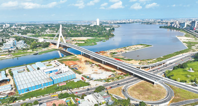 近年來,中國企業(yè)為提升非洲基礎(chǔ)設(shè)施水平、加速互聯(lián)互通和一體化進程、促進當?shù)亟?jīng)濟社會發(fā)展和民生改善等作出了積極貢獻。圖為中國路橋工程有限責任公司承建的科特迪瓦阿比讓科科迪斜拉橋項目。