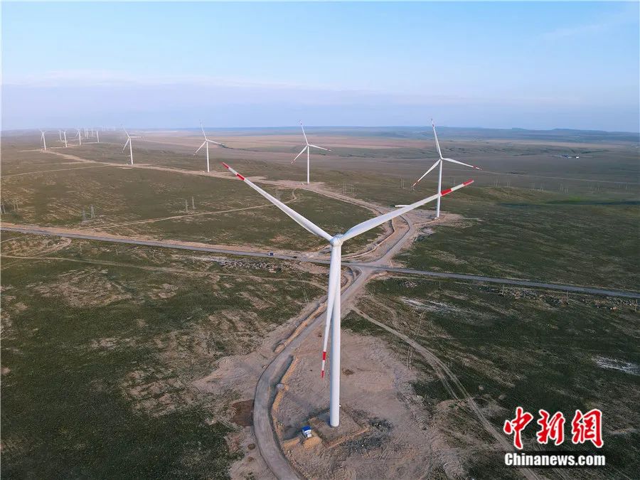 位于哈薩克斯坦南部地區(qū)的札納塔斯風電項目于2021年并網發(fā)電,為當?shù)靥峁┝饲鍧嵞茉幢U?。國家電?供圖