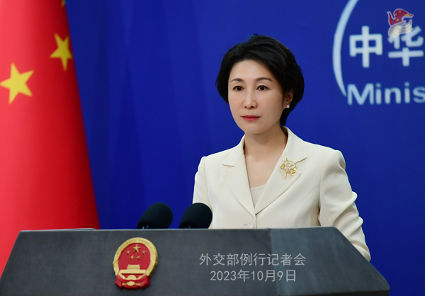 中新網北京10月9日電 (記者 李京澤)中國外交部發(fā)言人毛寧9日主持例行記者會。有記者就巴以沖突和美國向以色列運送軍事設備提問。