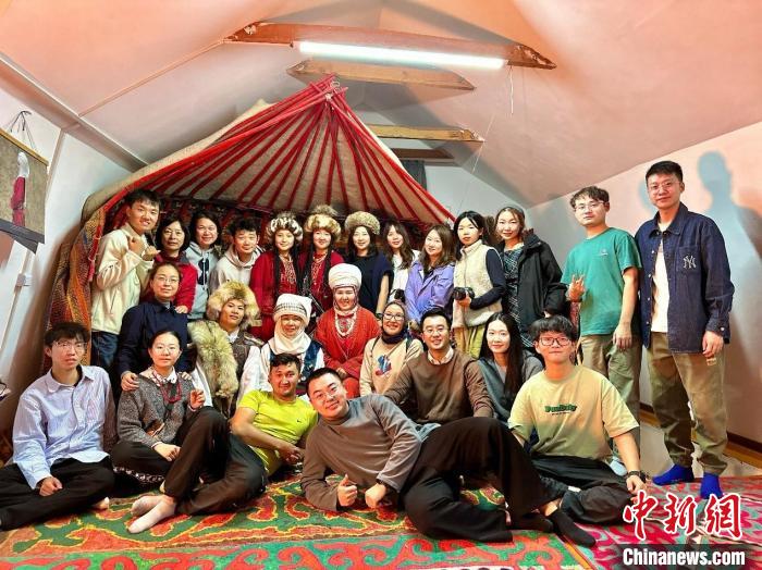 北師大未來設計學院師生在吉爾吉斯斯坦民族服飾設計工作室體驗當?shù)貍鹘y(tǒng)服飾。北師大未來設計學院供圖