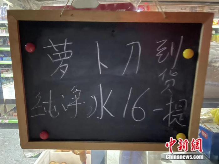 北京一所小學(xué)門口的小賣部黑板上寫(xiě)著“蘿卜刀到貨” 韋香惠 攝