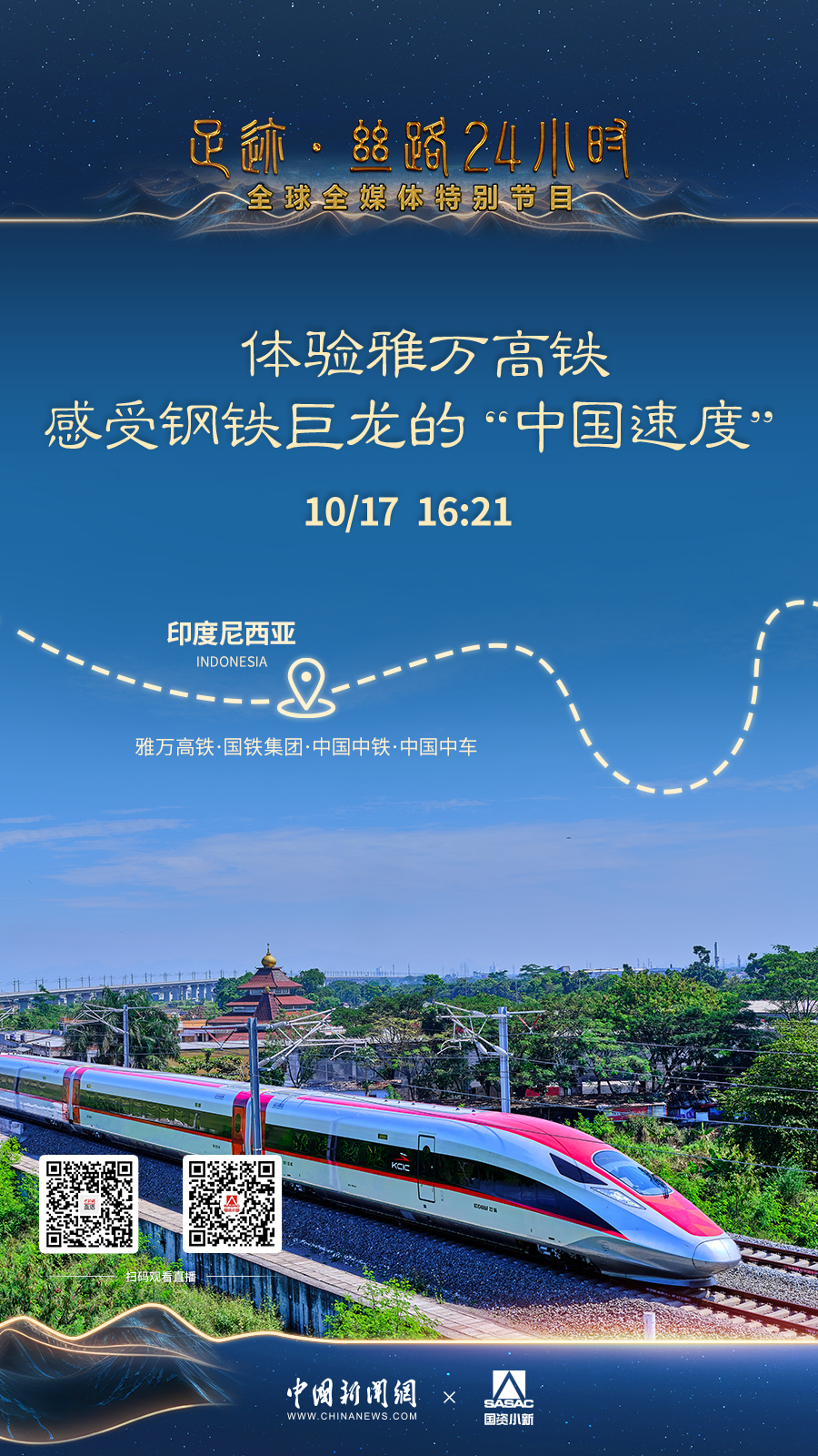 中新網(wǎng)北京10月17日電(記者 李金磊)“我坐在這里,好像坐在飛機上!”在“足跡·絲路24小時”全球全媒體特別節(jié)目中,一位首次乘坐雅萬高鐵的旅客興奮地說。