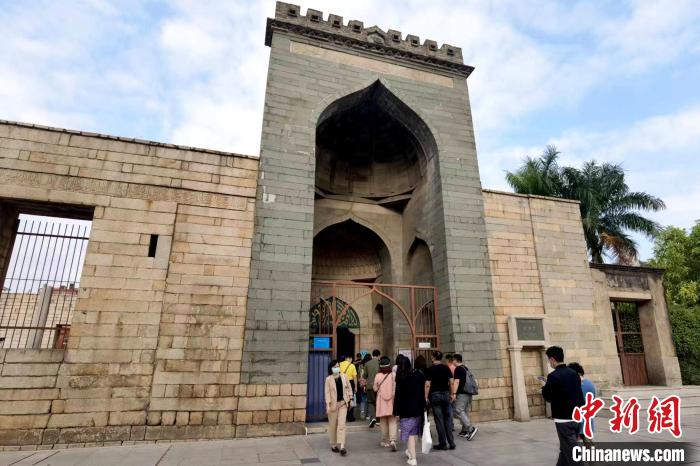 10月4日,仿大馬士革禮拜寺建筑的泉州清凈寺,吸引游客前來參觀?!≈行律缬浾?孫虹 攝