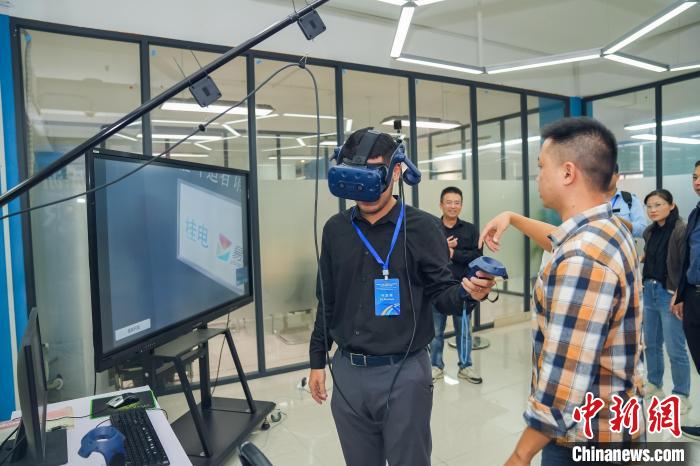 10月12日,柬埔寨青年代表在廣西桂林一家科技企業(yè)體驗VR技術。中國(廣西)國際青年交流學院供圖