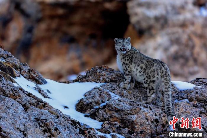 資料圖為2017年,攝影師在祁連山國(guó)家公園青海片區(qū)拍攝到的雪豹。(鮑永清 攝)