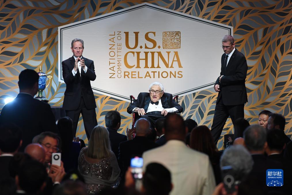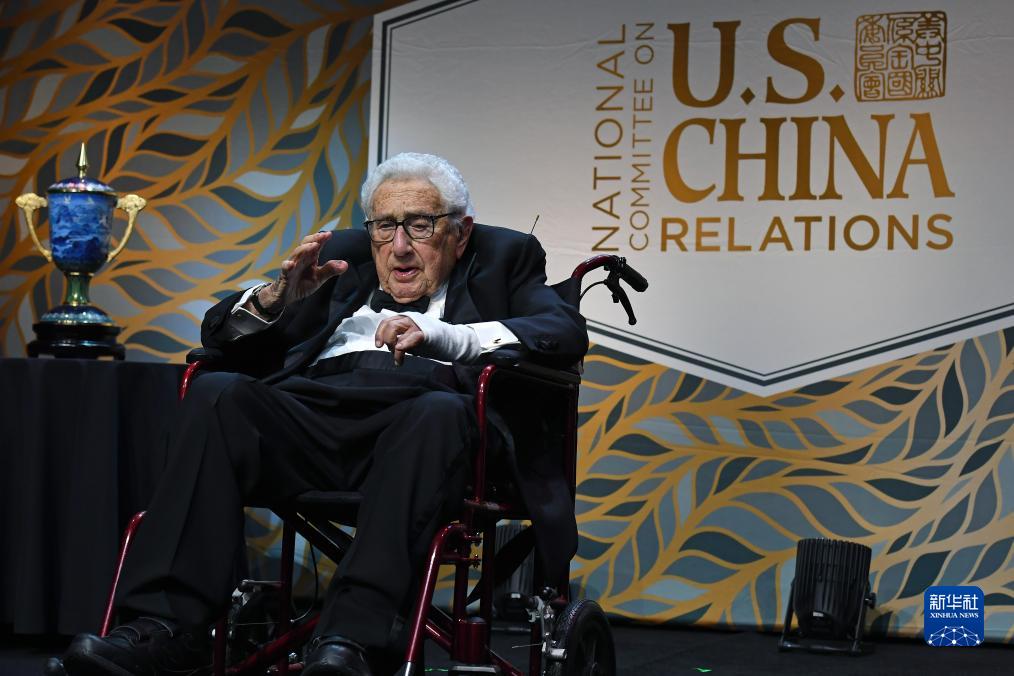 百歲高齡的基辛格在接受頒獎(jiǎng)時(shí),全場嘉賓報(bào)以持久熱烈掌聲。他在獲獎(jiǎng)致辭中說,“我一生中一半時(shí)間都在為美中關(guān)系工作”,美中之間的和平與合作至關(guān)重要,符合兩國和世界的利益。