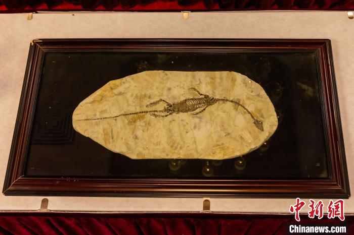 中國駐澳大利亞大使館舉行儀式,接收澳方向我國返還共4件流失文物藝術(shù)品與1件古生物化石。圖為晚侏羅世至早白堊世潛龍化石?!椅奈锞止﹫D