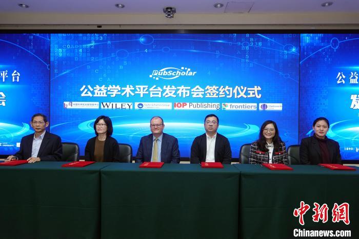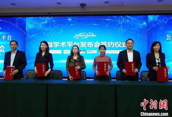 11月1日,“PubScholar公益學術平臺”在中國科學院文獻情報中心正式發(fā)布,并在發(fā)布會上舉行相關合作簽約儀式。中新網(wǎng)記者 孫自法 攝