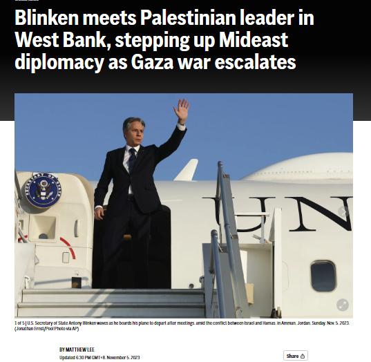 據(jù)報(bào)道,這是本輪巴以沖突爆發(fā)以來,美國最高級(jí)別外交官首次到訪約旦河西岸。