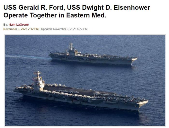 中新網(wǎng)11月4日電 綜合外媒報道,美國第六艦隊當(dāng)?shù)貢r間3日宣布,過去三天里,美國海軍在東地中海舉行雙航母演習(xí)。