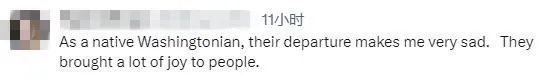 有網(wǎng)友說,“作為一個(gè)土生土長的華盛頓人,它們的離開讓我非常難過。它們給人們帶來了很多快樂?!?/p>