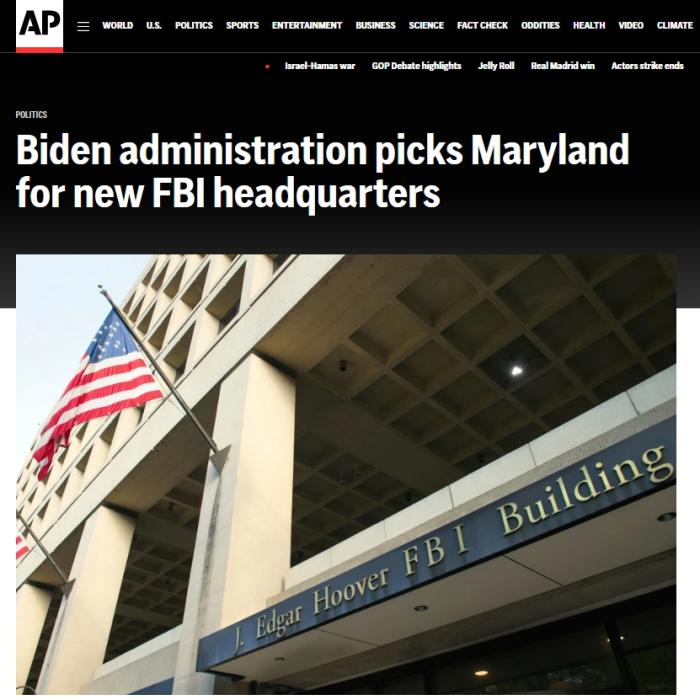 中新網(wǎng)11月9日電 綜合美聯(lián)社、《華盛頓郵報(bào)》報(bào)道,當(dāng)?shù)貢r(shí)間8日,美國(guó)聯(lián)邦總務(wù)管理局(GSA)證實(shí),美國(guó)政府已選擇在馬里蘭州設(shè)立聯(lián)邦調(diào)查局(FBI)新總部。