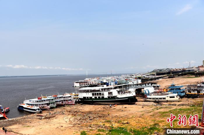 目前,當(dāng)?shù)睾竭\(yùn)主力的內(nèi)格羅河、馬代拉河、塔帕若斯河等亞馬孫河主要支流的水位,都已處于歷史最低水平。在馬瑙斯多個港口,記者看到多艘船只擱淺,大型貨運(yùn)船只泊滿碼頭按兵不動。