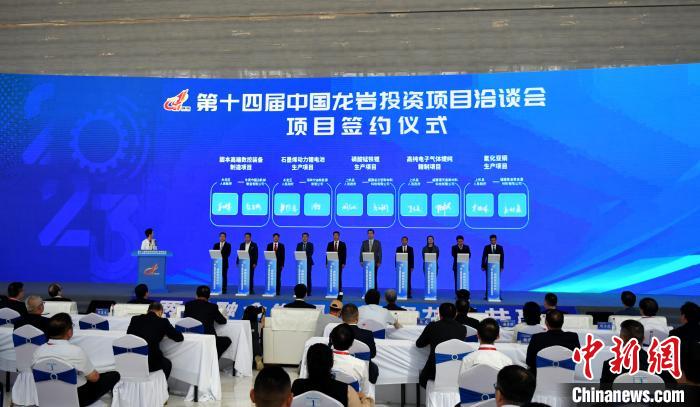 11月8日,第十二屆海峽兩岸機(jī)械產(chǎn)業(yè)博覽會暨第十四屆中國龍巖投資項(xiàng)目洽談會在福建省龍巖市拉開帷幕。圖為現(xiàn)場簽約。中新網(wǎng)記者呂明攝