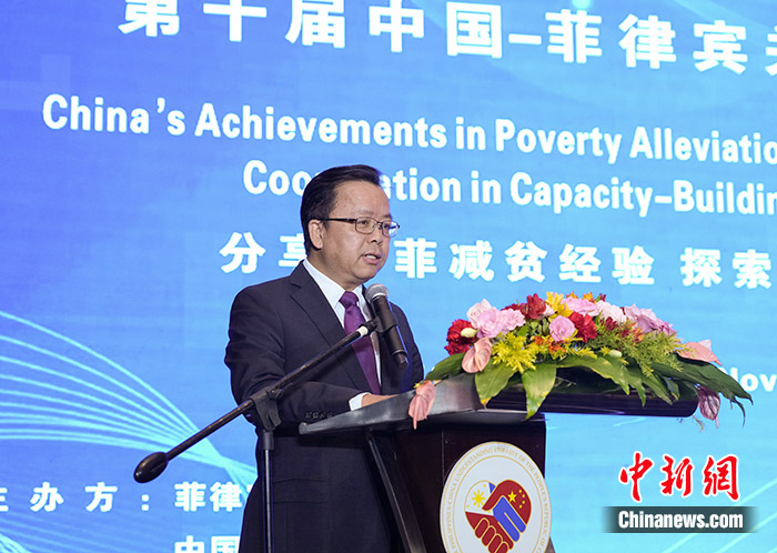 當(dāng)天,由中國駐菲律賓使館和菲律賓中國了解協(xié)會聯(lián)合舉辦的第十屆“中菲關(guān)系馬尼拉論壇”在馬尼拉舉行,主題為“分享中菲減貧經(jīng)驗(yàn),探索兩國減貧合作路徑”。