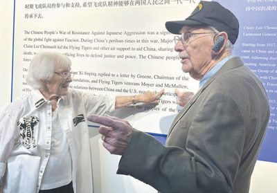 走進博物館,代表團成員在一張張老照片、一件件珍貴實物前流連,認(rèn)真聆聽講解,還不時與身邊親友交談。麥克馬倫在展板上看到自己的名字后,興奮地向妻子珍妮弗指了指名字的位置。他曾擔(dān)任B—24轟炸機機頭炮手和助理飛行機械師,在昆明和成都參加對日作戰(zhàn)。看著玻璃柜里的展品,他感慨:“美中兩國人民的友誼將延綿不斷?!?/p>