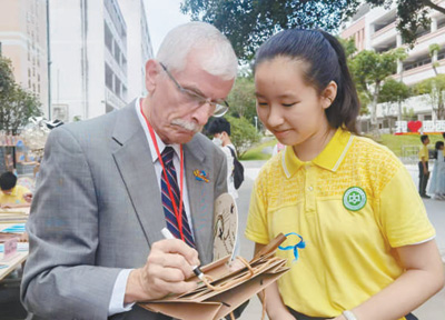 飛虎隊老兵后人蘭迪·斯科特為廣西柳州市壺西實驗中學(xué)學(xué)生留言。