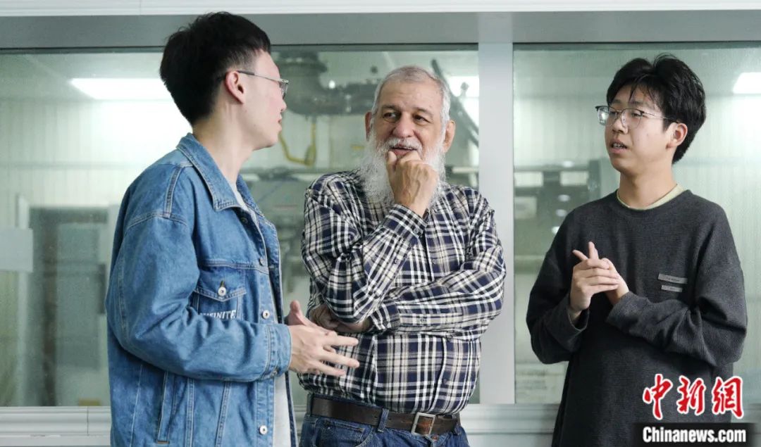 2023年11月,利用實(shí)驗(yàn)室午間休憩間隙,裴德樂在電子科技大學(xué)接受了中新社“東西問”采訪。身著紅色衛(wèi)衣、藍(lán)色牛仔褲的裴德樂精神矍鑠,言語間中氣十足。