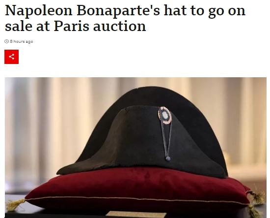 報(bào)道稱,拿破侖擁有大約120頂雙角帽,據(jù)說目前僅存20頂,其中一些被私人收藏。不過,奧斯納拍賣行稱,在專家看來,即將拍賣的這頂才是真正如“圣杯般的帽子”。歷史學(xué)家說,拿破侖經(jīng)常側(cè)著戴雙角帽,讓自己在戰(zhàn)場上更具辨識(shí)度。