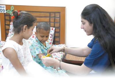 考慮到兒童病患的特殊性,“小家”一直將孩子們的心理疏導(dǎo)作為志愿工作的重點(diǎn)。“孩子們的心理狀態(tài)很重要。”“小家”巴方負(fù)責(zé)人蘇比婭·阿德南說(shuō)。阿德南有30多年的兒童公益服務(wù)經(jīng)歷,在她和巴中兩國(guó)同事的引導(dǎo)下,孩子們相互鼓勵(lì)支持,在閑暇時(shí)制作各種手工藝品布置“小家”。