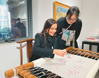與會法方嘉賓在欣賞中國畫家的畫作。