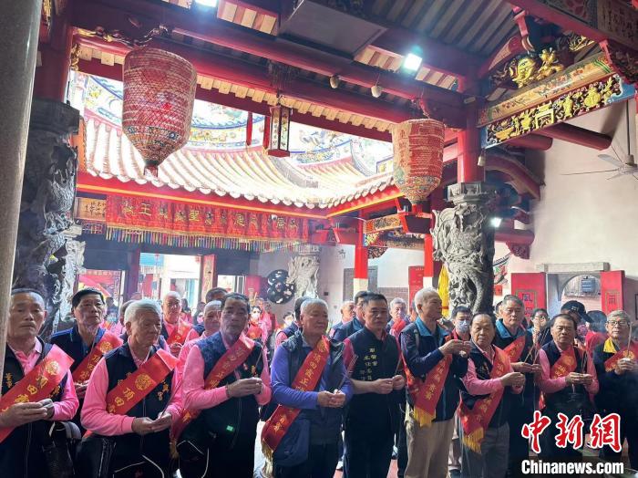 圖為18日臺灣參訪團(tuán)一行人在福建漳州市薌城區(qū)的頂田霞正順廟進(jìn)香祭拜。頂田霞正順廟供圖