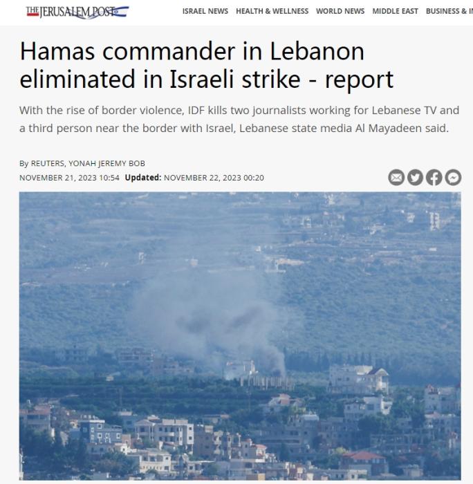 報道還稱,當天早些時候,以軍對黎巴嫩的攻擊還導(dǎo)致兩名為黎巴嫩電視臺工作的記者以及在黎以邊境的一名工作人員身亡。