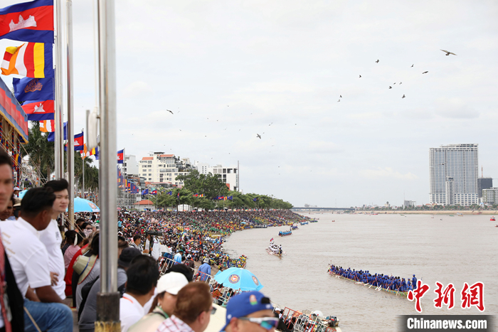 今年送水節(jié)活動(dòng)是柬埔寨自2020年以來受到新冠疫情影響以及因2022年舉辦東盟峰會(huì),時(shí)隔三年再度舉行。本次送水節(jié)舉辦的龍舟比賽,共有來自全國各地338只代表船隊(duì)角逐,超過2萬名劃手參與其中。