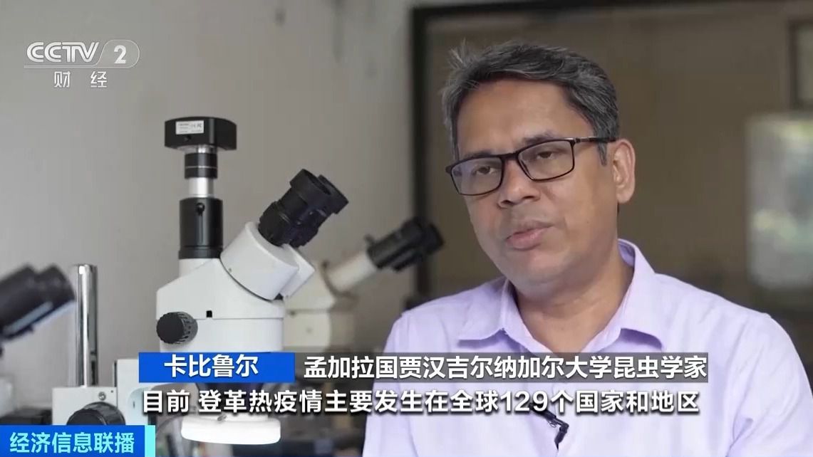 孟加拉國賈漢吉爾納加爾大學(xué)昆蟲學(xué)家 卡比魯爾:目前,登革熱疫情主要發(fā)生在全球129個國家和地區(qū),其中大多數(shù)國家都位于熱帶和亞熱帶,這些國家容易受到氣候變化的影響。(央視財經(jīng))