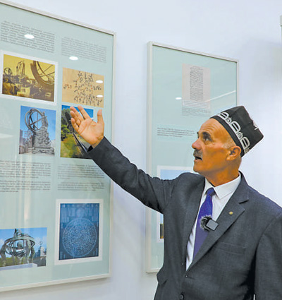 在位于撒馬爾罕的兀魯伯天文臺,講解員介紹中烏在天文學(xué)等領(lǐng)域的交流歷史。