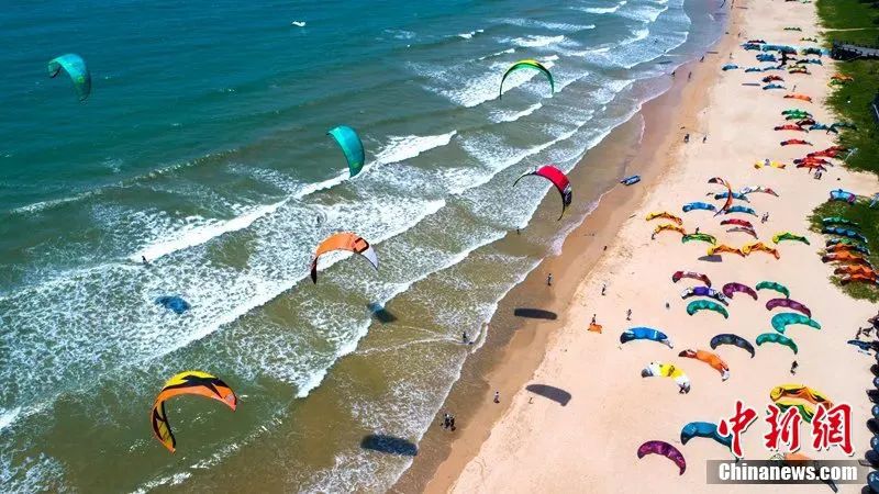 圖為瓊海博鰲灣海域上顏色各異的風(fēng)箏在海面上“起舞”。駱云飛 攝