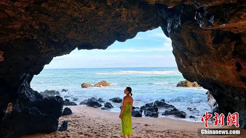 圖為萬寧山欽灣燕子洞懸崖秘境吸引游客打卡。符宇群 攝