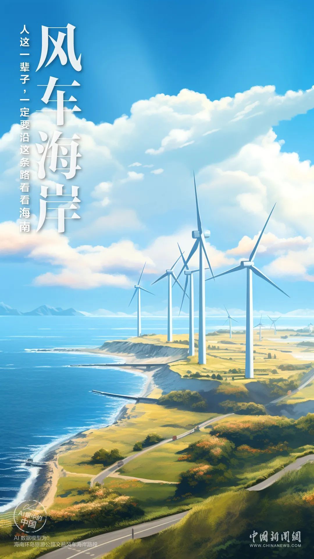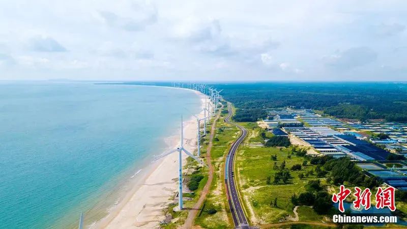 圖為海南環(huán)島旅游公路文昌風(fēng)車海岸路段。林士杰 攝