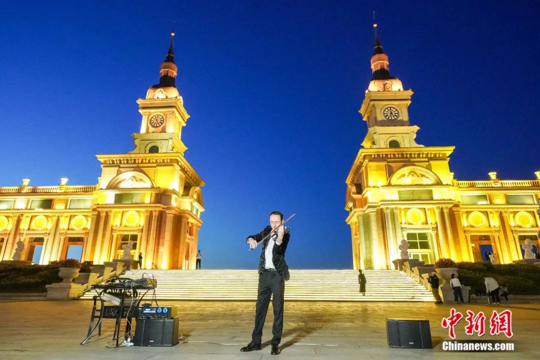 9月13日,黑龍江省首屆中俄地方文化藝術(shù)季街頭路演在音樂長(zhǎng)廊舉行。演奏者用小提琴演奏《如愿》。中俄音樂文化交流廣泛而深入。趙宇航攝