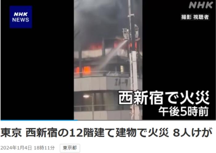 中新網(wǎng)1月4日電 據(jù)日本廣播協(xié)會(NHK)報道,當?shù)貢r間1月4日傍晚,日本東京新宿區(qū)的一棟12層建筑發(fā)生火災,現(xiàn)場火光沖天濃煙滾滾,目前已致8人受傷。