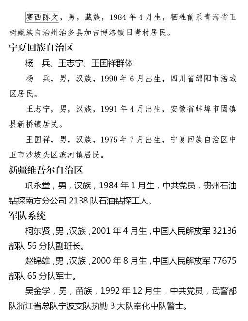 上榜勇士中有勇斗持刀犯罪嫌疑人身負重傷的張照杰、姚玉龍、王沖、王永芳;有從高橋跳水救人的周中磊、曾文文、周海;有從隨時可能爆炸的事故車輛中救出司機母子的湯益鑫;有冒著煤氣罐爆炸危險制服劫持孩子歹徒的蔡國榮;有救援被困電梯內同事而導致左小腿截肢的翟元敏;有休假期間水下連續(xù)救人的現役軍人柯東賢、吳金學、趙錦雄;更有見義勇為英勇犧牲的李偉倫、張嘉俊、張可可、李峰武、安西德、何同猛、曾維龍、胡喜明、李振華、東周才仁、賽西陳文11位同志。勇士們見義勇為事跡鼓舞人心、振奮精神、催人奮進。他們用血汗甚至生命秉承、詮釋了中華民族傳統美德,用奮不顧身的實際行動踐行了社會主義核心價值觀。