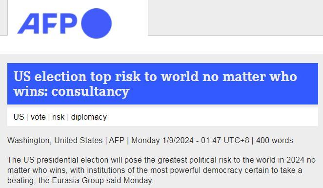 報(bào)告:美國(guó)2024年總統(tǒng)選舉將成全球最大風(fēng)險(xiǎn)丨世界觀