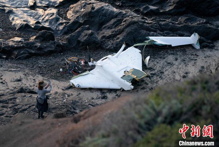 當(dāng)?shù)貢r間1月15日,一架小型飛機(jī)的殘骸出現(xiàn)在美國北加州圣馬特奧縣海岸?!≈行律缬浾?劉關(guān)關(guān) 攝