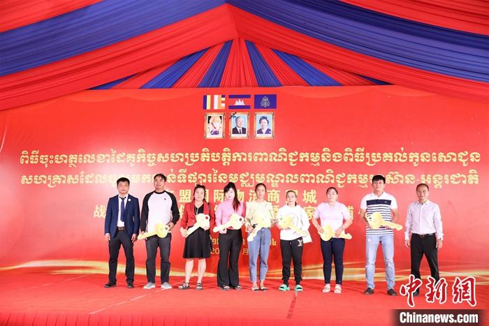 當(dāng)天,東盟國際物流商貿(mào)城舉行戰(zhàn)略合作伙伴簽約儀式,并向首批入駐商家交付店鋪鑰匙。柬埔寨商業(yè)部、金邊市政府、中國駐柬埔寨大使館等相關(guān)官員,柬埔寨僑社代表、商界領(lǐng)袖以及來自各國的商業(yè)合作伙伴共同出席前述活動(dòng)。