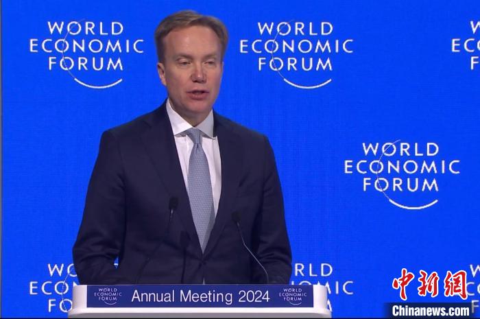 當?shù)貢r間1月19日,世界經(jīng)濟論壇2024年年會在瑞士達沃斯閉幕。圖為世界經(jīng)濟論壇總裁博爾格·布倫德發(fā)表閉幕致辭。中新社記者 馬秀秀 攝
