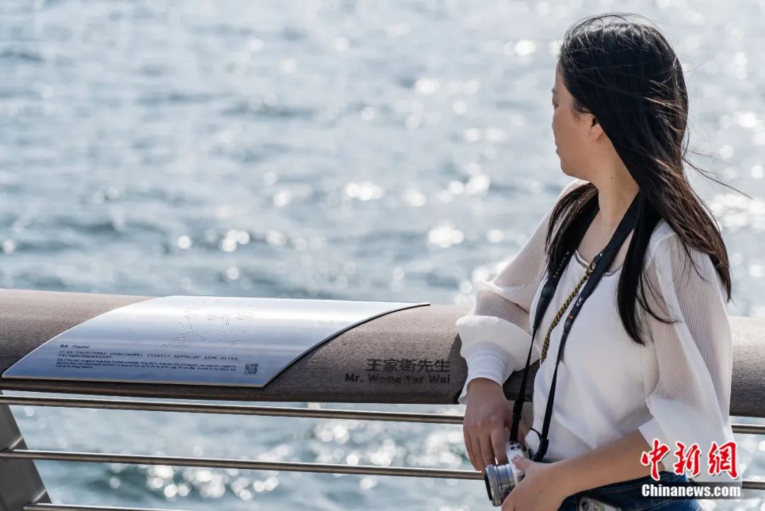 2024年1月14日,隨著電視劇《繁花》的熱播,香港尖沙咀星光大道上導演王家衛(wèi)的銘牌受到關注,成為游客打卡對象。侯宇 攝