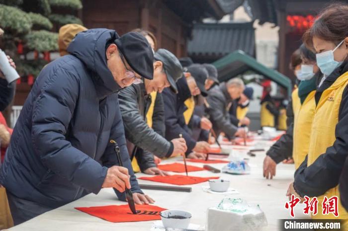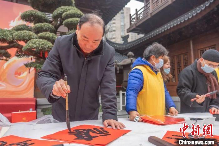 中新網(wǎng)上海1月21日電(記者 范宇斌)21日,“龍興歲時(shí)旺 送福百萬家”——2024年玉佛禪寺新春送福活動(dòng)在上海玉佛禪寺啟動(dòng)。上海覺群書畫院理事長、玉佛禪寺方丈覺醒法師表示,迎新貼“?!弊质莻鹘y(tǒng)的年俗文化,也是中華兒女對(duì)于美好生活、光明未來的共同期待。